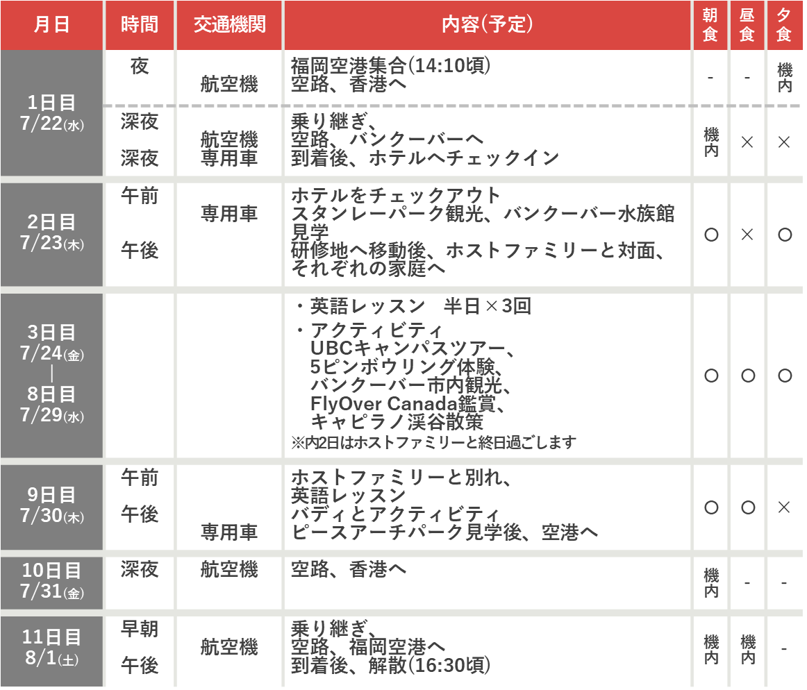 食事 [機内] 機内食 [○] 滞在先、手配あり [✕] 各自負担 (団体行動中に購入します)