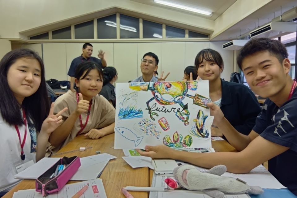 5〜6名に1名の留学生がグループをリードし、講師が全体を統括。対話中心の学びを通して、英語で考え、意見を伝え、深め合う経験を重ねることで、実践的な英語力と自信を着実に育てます。
