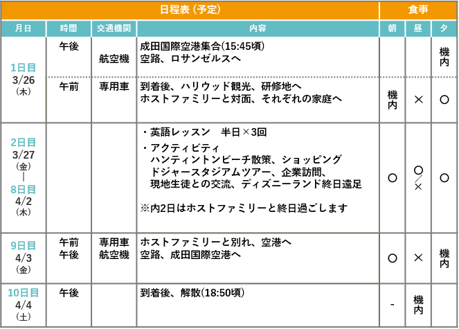 ▶本プログラムは現金が使用できない場所へ行くこともございますので、キャッシュレス決済手段をご準備いただくプログラムです。詳しくは、渡航手続きのご案内冊子「旅の準備」にてお知らせいたします。